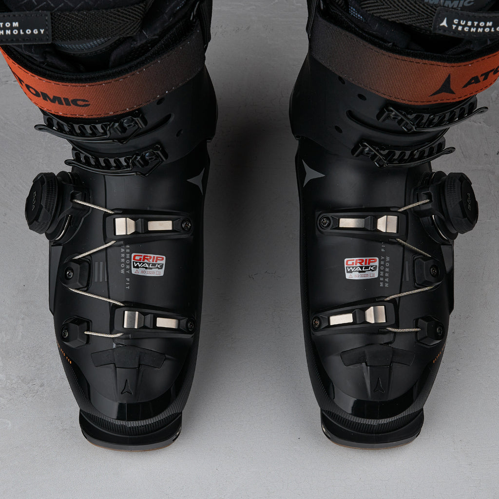 The Atomic Hawx Ultra XTD 110 Boa is a low volume boot that makes sense for intermediate skiers who want a downhill oriented boot with a walk mode and a tech toe for the occasional touring day. At a 110 flex this boot isn't the most powerful but it's more than enough boot for lighter weight skiers, or intermediates who don't need to the stiffest boots out there. Power transfer from boot to ski is efficient, smooth, and forgiving. For a boot that can ski and walk, this is one of the better skiing options in this category. It behaves more like a traditional downhill boot (Props to Atomic). Considering how well this boot performs in the resort, the walkability is rather impressive. It's easy to put the boot in walk mode and it has a fluid feel on ascents to make your hike as efficient as possible. The Boa system on the lower shell makes quick fit adjustments easy on the fly and helps to wrap the foot more evenly in the boot. If you're looking for a more performance oriented fit or a more powerful boot, check out the Atomic Hawx Ultra XTD 130 Boa.
