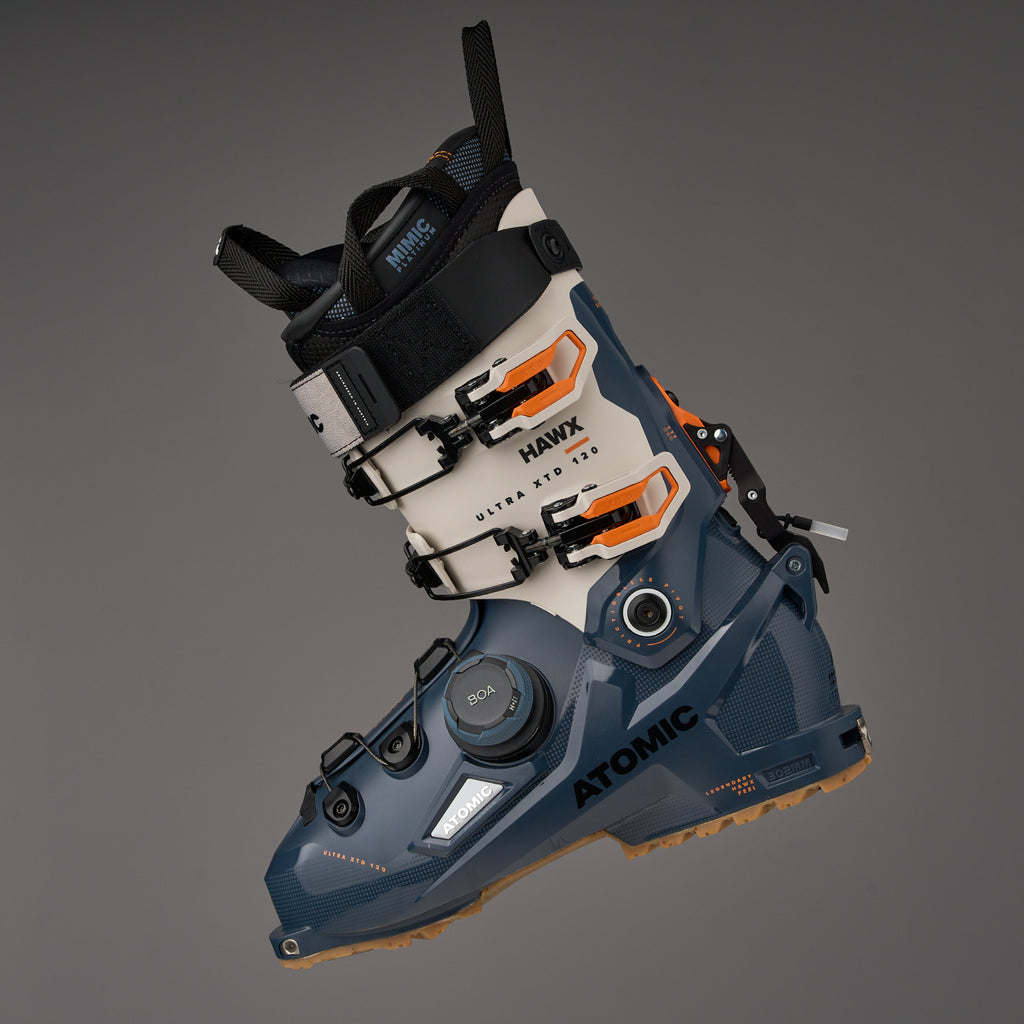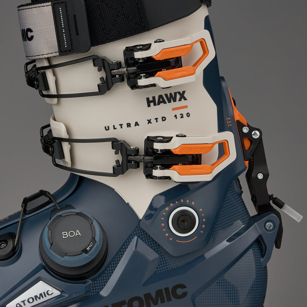 New for this season, Atomic has added a 120 flex boot to their low-volume hybrid touring line, filling the gap between the 110 and the 130. This is for skiers looking for something stiff but not the stiffest. The 120 has the same awesome tech as the 130, it's just slightly more forgiving. The two boots share the same liner, which is a step up from the liner used in the XTD 110. What we love about the entire XTD line, specifically this new 120, is that these hybrid boots perform more like a traditional downhill boot than most other boots in the category. The XTD 120 provides enough power to drive the burliest skis on the market, while still providing the essential features of an alpine touring boot. On the way up, a tech toe and smooth range of motion make touring days a breeze. This is a boot that makes the most sense for skiers who spend the majority of their time crushing resort laps and take the occasional trip into the backcountry or side country. Call it a 70/30 boot, or 80/20. This is a more aggressive fitting boot that more advanced skiers, skiers with low-volume feet, or skiers who want an unrivaled lock will more than enjoy. If you want something more aggressive, the Ultra XTD 130 is as good as it gets. If you're looking for a more relaxed fit, check out the Hawx Prime XTD series.