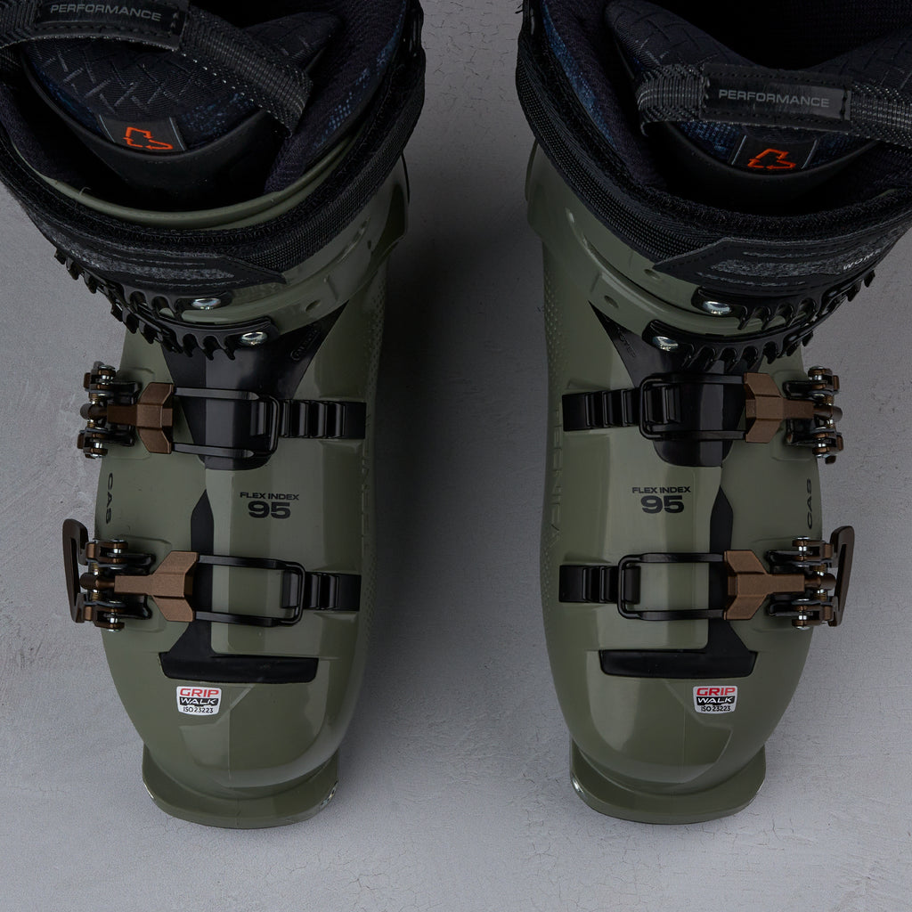 The Cochise 95 is a stated 99mm last but it fits more generously than that. It's a bit more relaxed on the sides of the feet than some other mid-volume boots. The instep and top of the foot are true for a mid-volume fit. Length may feel a tad short out of the box, but this will feel more appropriate after the boot is molded to the foot. The heel is snug but on the more supple side of things. It will keep your heel held in nicely, it just isn't an aggressive grab back there. The Cochise 95 is able to accommodate larger or more athletic calves as well.