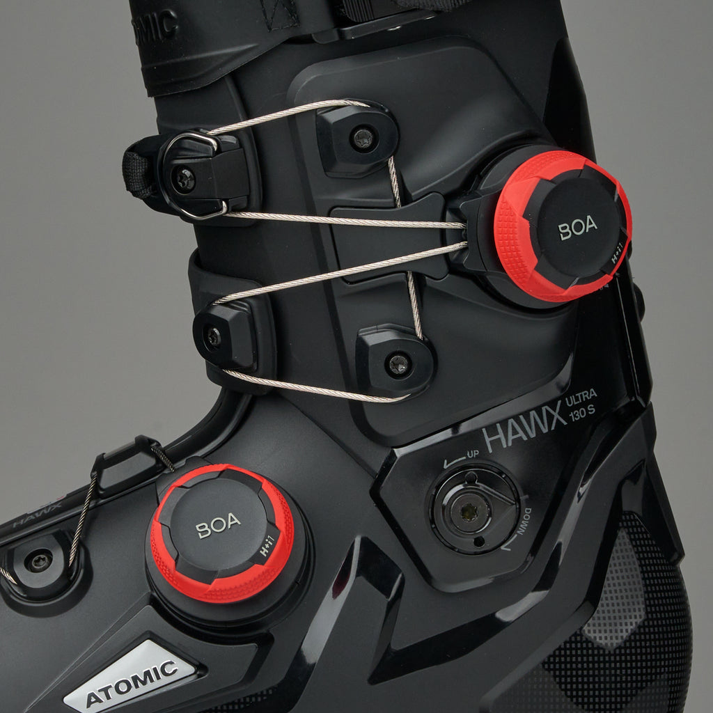 The Atomic Hawx Ultra has been a staple in the low-volume high performance category for quite a while now, for all the right reasons. This season the Ultra 130 got an updated liner and a new closure system -- Dual BOA. Compared to previous verions of the Ultra 130, the newest rendition is a bit more precise in the heel with added matterial around the ankle bones and in the achilles area. Aside from the new BOA closure offering and the liner tweaks the Ultra 130 remains unchanged.