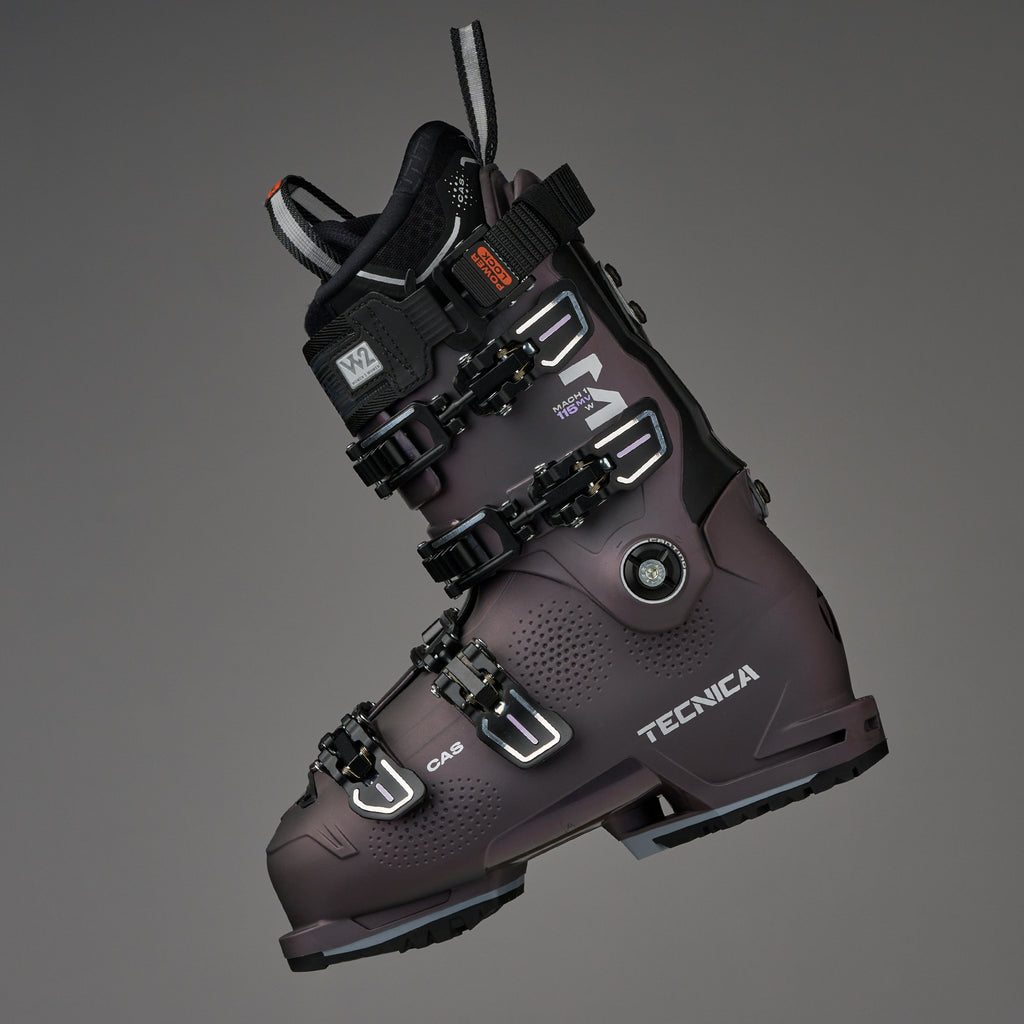 The Tecnica Mach1 MV 115 is a mid-volume boot for expert or aggressive skiers who value enough comfort to keep their feet happy. Just because this isn't the tightest fitting boot out there doesn't mean it can't absolutely shred, the Mach1 115 shreds. If you're a good skier with average feet and want a boot that will never hold you back from skiing as hard as you want this is one of the best boot options for you. It's powerful, and responsive and will be able to drive any ski and tackle any terrain you throw its way. For a 115 flex, the liner isn't incredibly aggressive either, and it's one of the easier high-performance boots to put on and take off. This is one of the most powerful, women's specific, ski boots we carry, and while the fit isn't low-volume it skis like a low-volume boot and offers unrivaled performance on the hill.