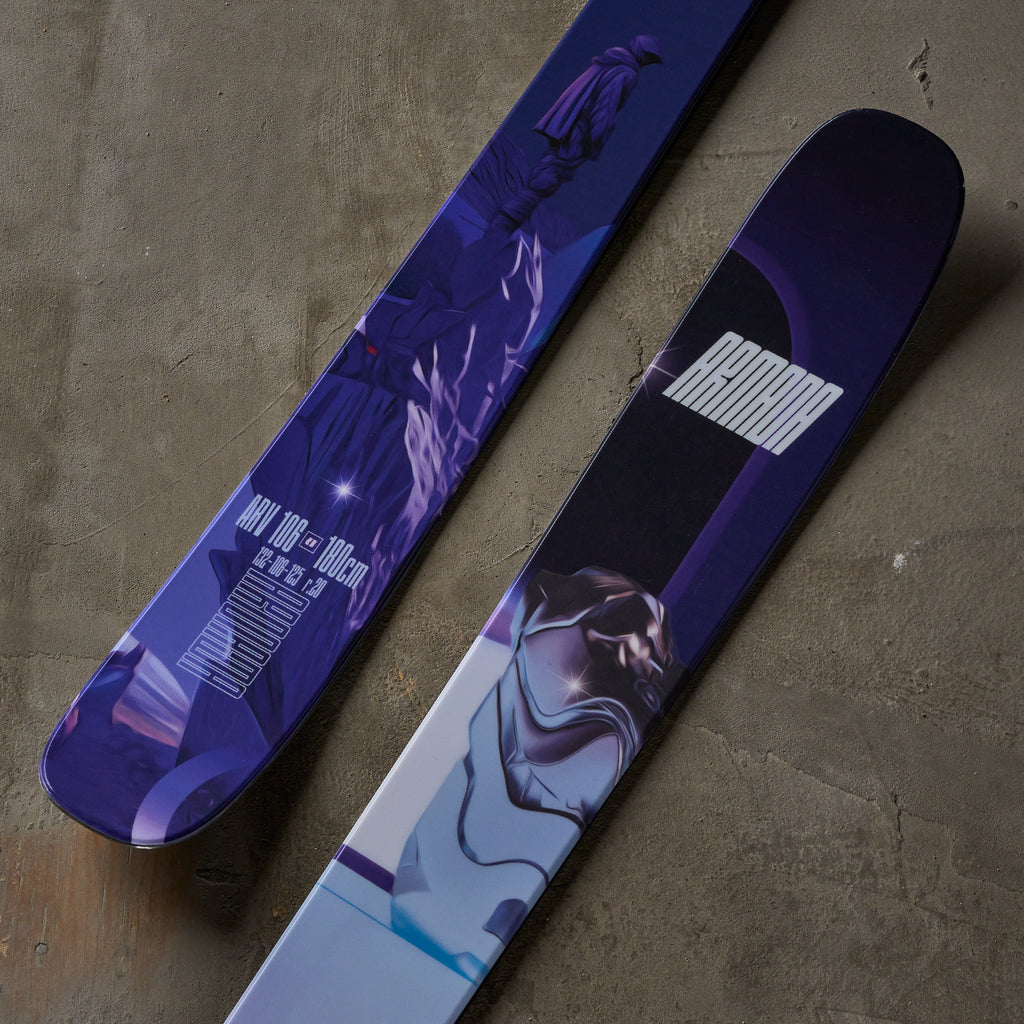 The Armada ARV 106 falls into the all-mountain, freestyle, and powder ski categories. It's right at that waist width where you'll have plenty of ski on just about any powder day, but it's not so wide that it'll feel silly if the conditions aren't great. It's most at home off-trail looking for pow or technical terrain, but it's not too chattery if you find yourself on groomed terrain. Soft flex in the tip and tails along with a progressive sidecut and aggressive rocker profile allow the 106 to pivot on a dime. That's what makes it so fun off-tail. It's agile and wicked easy to turn. Weaving through trees and bumps takes nothing. That quick and forgiving feel also translates pretty well in the park. If you're a park skier or aspiring to be one, the ARV 106 will allow for it. It's much wider than your traditional park ski, but it still has a buttery feel and low swing weight. This is a wider ski that really won't be mad wherever you take it. If you're looking for a daily east coast ski, you'll probably be happier on one of the narrower models, but this is an awesome option for any skier with a more playful style who plans on having more than just a few pow encounters this season.