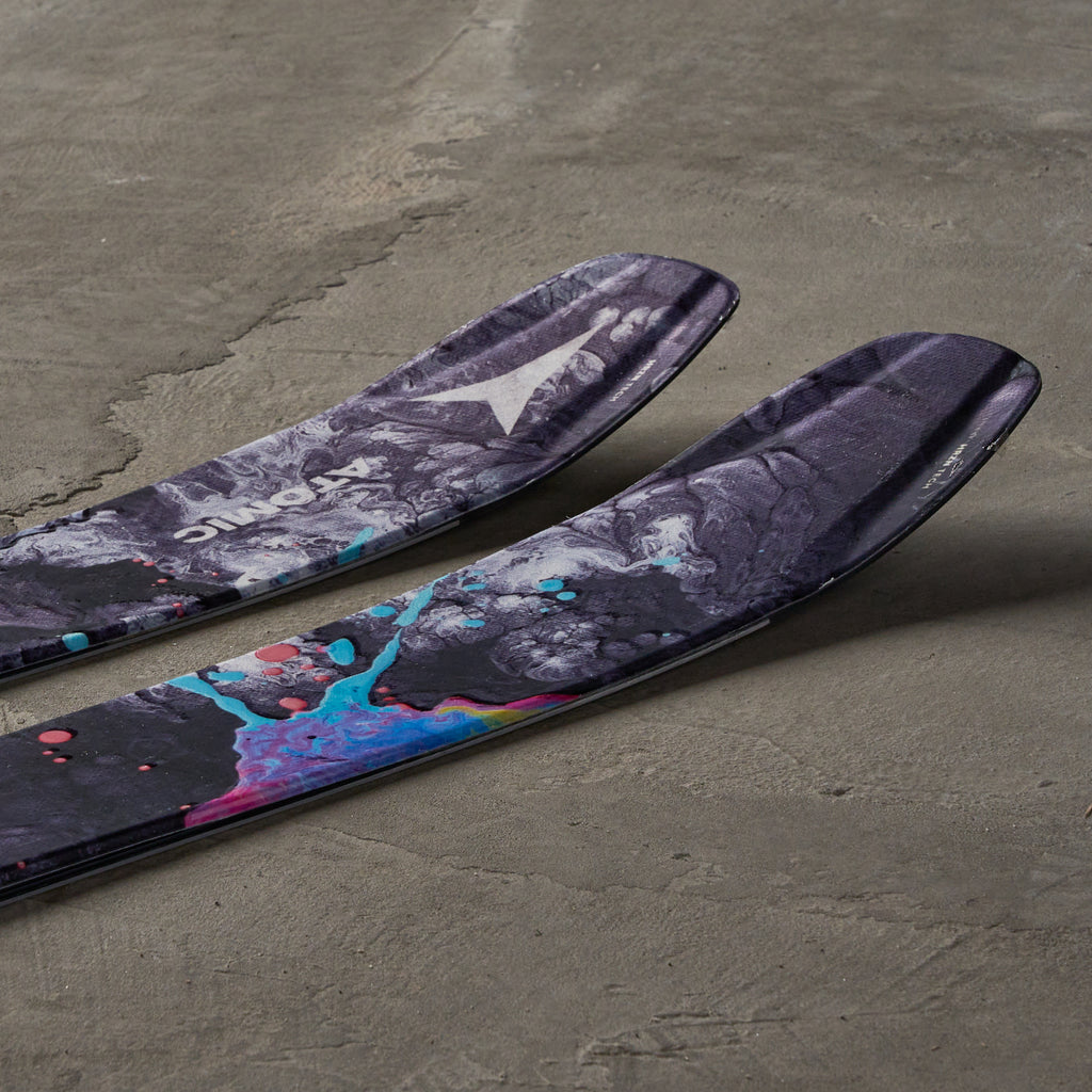 The Atomic Bent 90 is the Bent 100's little brother. It's the most playful offering of the Bents. It's really nimble and likes to just bop around the mountain. For skiers that spend a good chunk of time in the park, this is the Bent for you. It's buttery smooth, never feels demanding, is balanced in the air, and also has a forgiving flex pattern which also makes it a great option for a range of skier types. Compared to the wider Bents, the Bent 90 is the least capable all over the mountain and doesn't always feel the most confident at higher speeds or in a turn on icy groomers. If you're just skiing casually and aren't out there pushing the limits or skiing dicey terrain the Bent 90 can handle skiers who aren't overly aggressive. The Bent 90 was built for crushing park laps, side hits, mellow trips through the trees, and helping to make less experienced skiers feel more confident on the mountain. If you're a more experienced skier interested in a stronger ski that's still plenty playful, check out the Atomic Bent 100.
