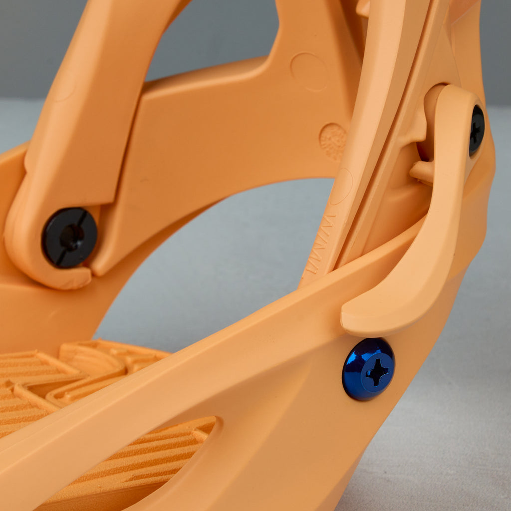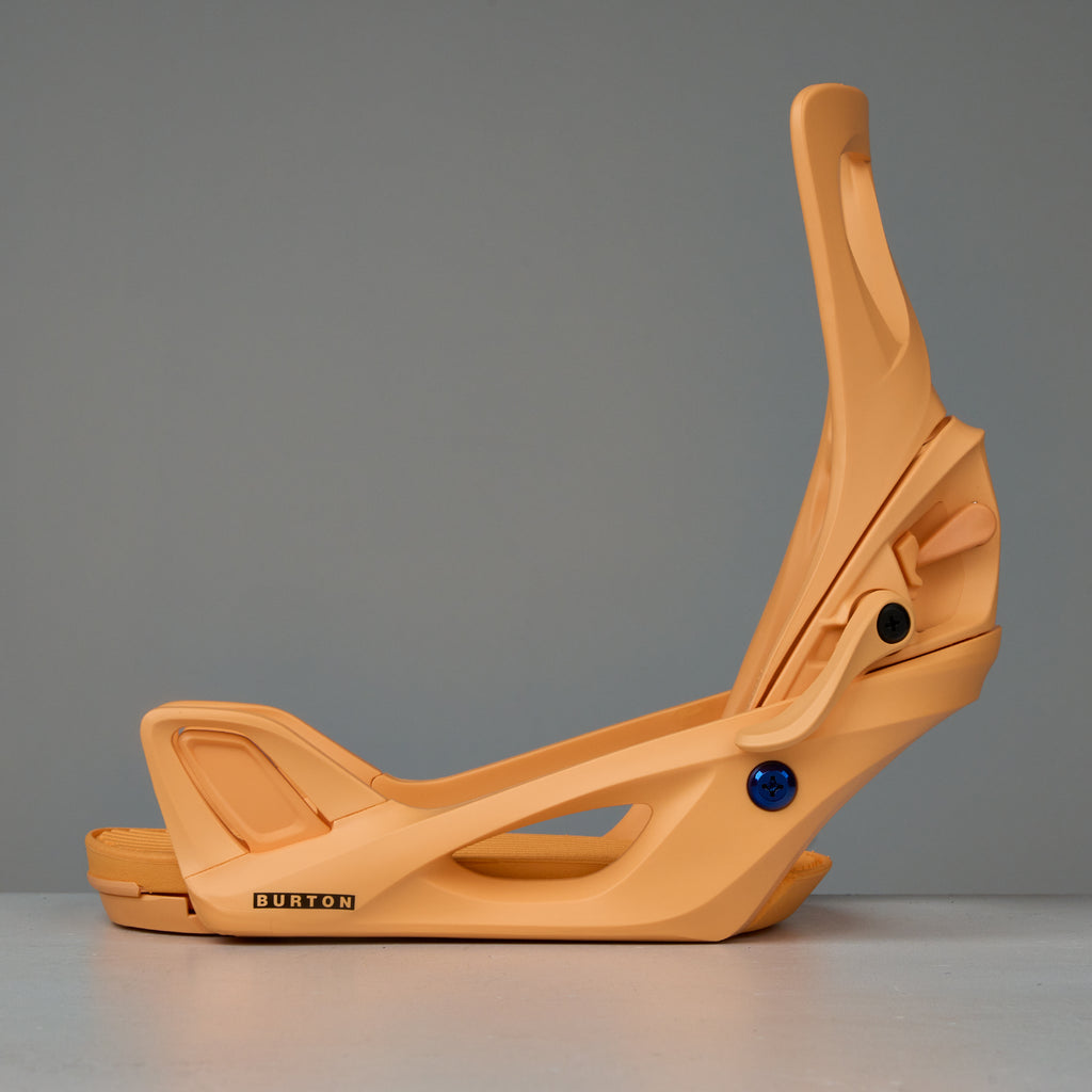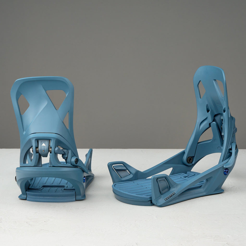 If you're looking for something to pair with a women's specific Step On boot, the women's Step On Re:Flex might be the binding for you. This binding is designed for the casual rider looking for a versatile option that provides maximum convenience and quickness for when it's time to start riding. The Step On Re:Flex is the mid-flex option that is not too aggressive but also isn't too beginner-friendly. It has enough forgiveness to help lean into the next turn while still being confident enough to handle your progression. This is a top option for a massive range of riders, from new riders looking to grow to more seasoned riders who want to go out, cruise some mellow laps, and occasionally push themselves. If you're someone who rides aggressively and pushes yourself every run, you'll be more stoked on something stiffer. This is for riders who want something capable and most importantly, convenient. The Burton Step On system is unmatched when it comes to jumping onto your board in an instant, and with the Step On Re:Flex every run down will be banger too.