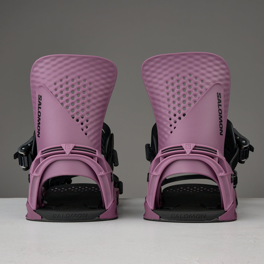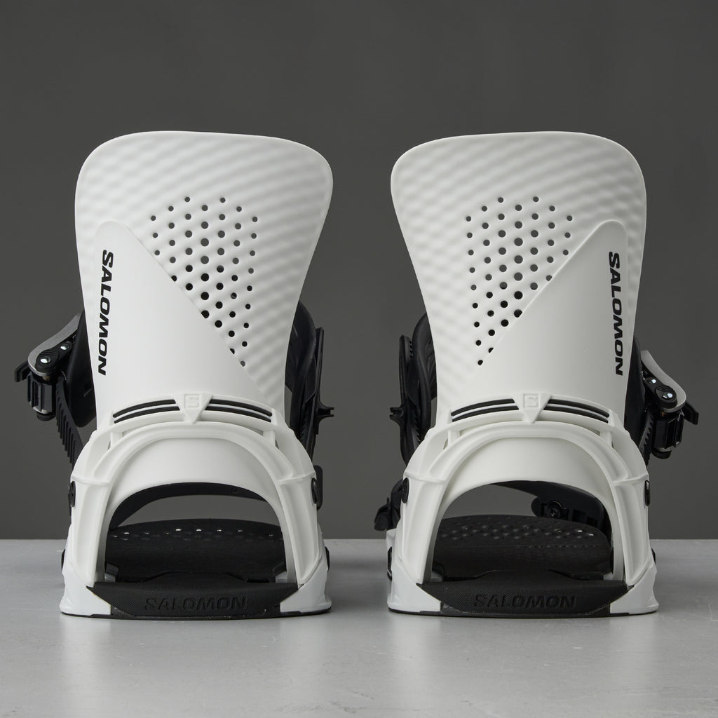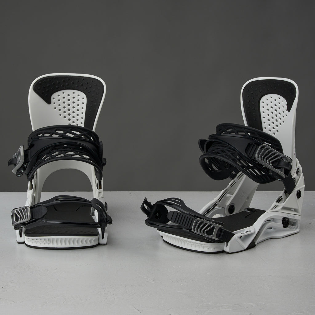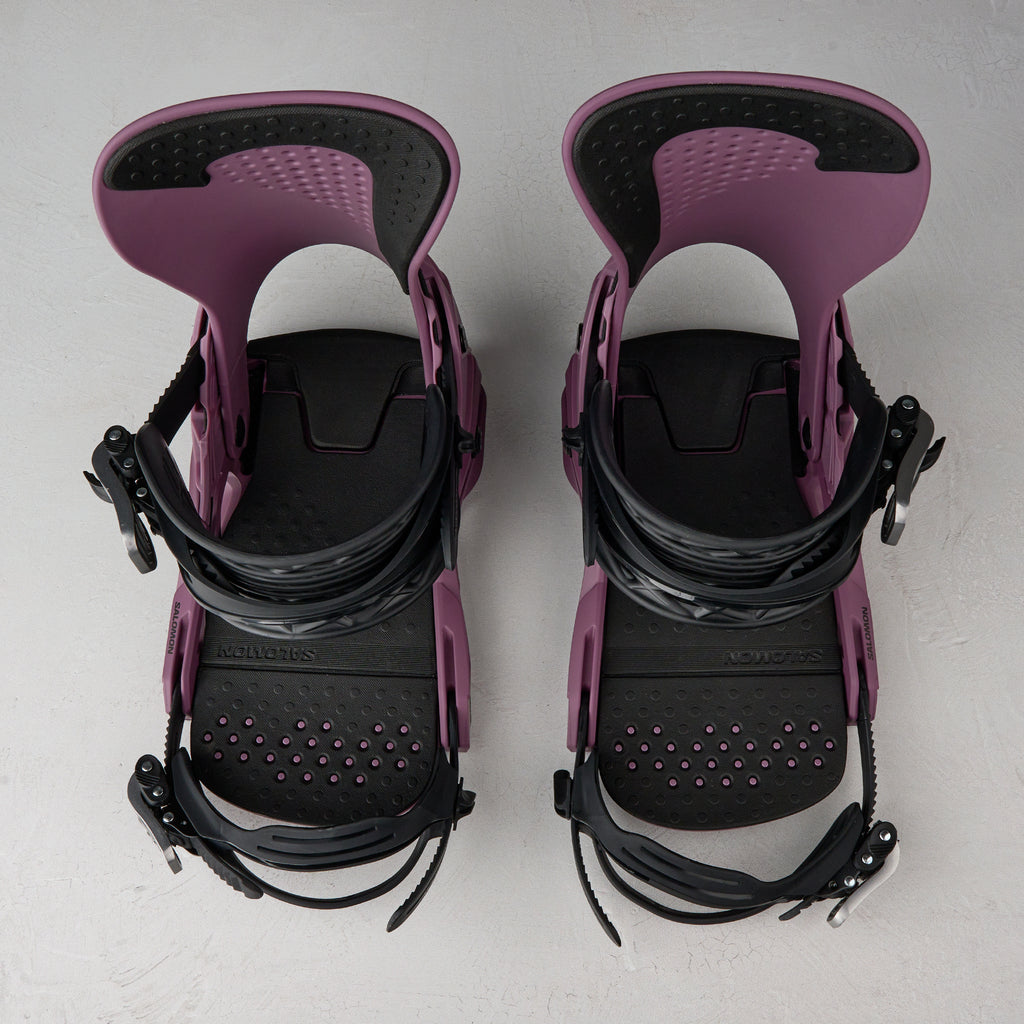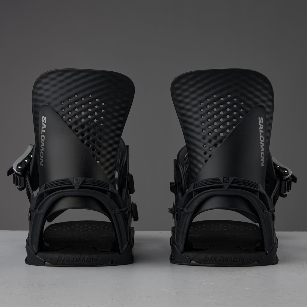The Salomon Hologram is one of the smoothest bindings out there. It stands out among other bindings because of the way it wraps your heel and locks you in. A lightweight heelhoop paired with a Kevlar QuickWire wraps the entire heel of the binding, making it so your heel is locked in, this maximizes endurance and performance. Because it locks your heel so well, it feels incredibly smooth and consistent. The binding offers a unique combination of control, responsiveness, and mobility while maximizing comfort. A medium-stiff flex puts it a little more on the responsive side, so this binding wants a rider who can drive a snowboard. It's not the stiffest binding out there, but it can definitely handle some harder charging with ease. The highback generates plenty of power and makes you feel in control. Whether it’s freestyle, freeride, groomers, bowls, or trees you're looking to do, the Hologram will take you there.
