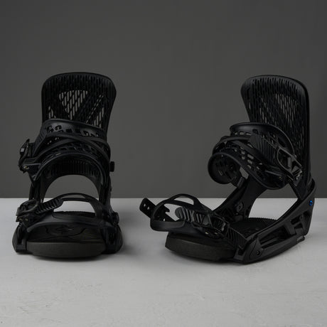 The Burton Genesis EST is a top-end binding that performs with a focus on comfort. Often thought of as one of the stiffest bindings that Burton makes, when it's actually more flexible compared to the Burton Cartel X. The additional flex is most noticeable from the built-in suspension. The highback wraps to the shape of your boot, which creates comfort since you're not leaning into a hard highback but does increase responsiveness because your boot can't slide up. Other features help align your leg properly for a stronger direct connection to the board with less of a roll or strain on the knee. Both toe and ankle straps are stitchless for max durability and a perfect fit that cradles the boot perfectly. While the Burton EST system is only compatible with the Burton Channel System, the perks of EST are pretty great. The Hinge System makes a noticeable difference by reducing the binding footprint on the board for vibration absorption and natural board flex, the ability for the binding and board to work together while under tension reduces foot fatigue and overall connection to the board. The Burton Genesis EST is lightweight, crazy comfortable, and can handle aggressive riding. It's simply one of Burton's best and a team favorite.
