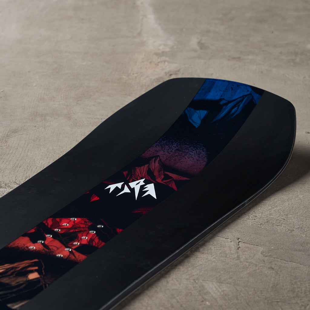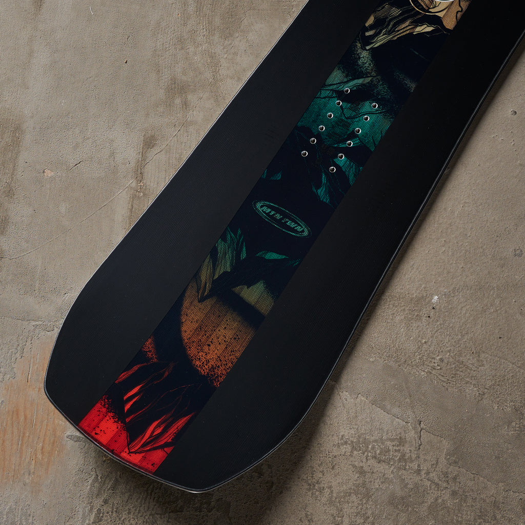 The Mountain Twin is a top-tested board every year because it really does do it all. The board brings a twin shape (hence the name) and a medium-stiff true camber profile. It has the shape of a park board but the burliness of an all-mountain charging board and is meant to bring riders the best of both worlds. It does all the things a park board can do; it's poppy, energetic, feels balanced, can be ridden switch, and loves park laps. It's not as playful as your average park board, but it's stiffer and more burly for when you want to take your adventure to other parts of the mountain. The Mountain Twin has become a favorite because while it has that freestyle shape and DNA, it maintains performance on hardpack groomers, stays confident through variable snowpack, and feels energetic and snappy in tighter terrain. A lot of freestyle boards can get nervous at high speeds and when the conditions are less than desirable, not the Mountain Twin.