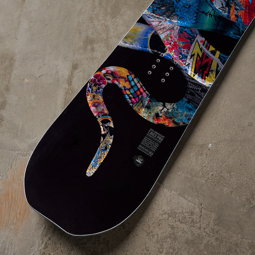 Travis Rice now has a few pro models in the Lib Tech lineup, with the OG T.Rice Pro being the twin-shaped all-mountain ripper of the bunch. This is going to be the option that makes the most sense for riders who aren't sure what they prioritize but know they want a playful board with a freestyle feel. The C2 profile (reverse camber) gives the board a ridiculously nimble feel that comes to life in tight terrain. The board's profile gives it a ton of pop toward the center, so pivoting and steering the tip and tail feels pretty easy. The downside of the reverse camber profile is you sacrifice some hard-snow performance in comparison to a traditional camber board. It doesn't grip as strong or consistently as a board with a camber profile all the way through it. Lib Tech's signature magne-traction does give the board a few additional contact points which does help on more firm snowpack. The T.Rice can still lay it down on groomers, just know that you're sacrificing a little bit of hard-snow performance for increased maneuverability. This board is meant for those who like to turn quick, get playful, and charge hard.