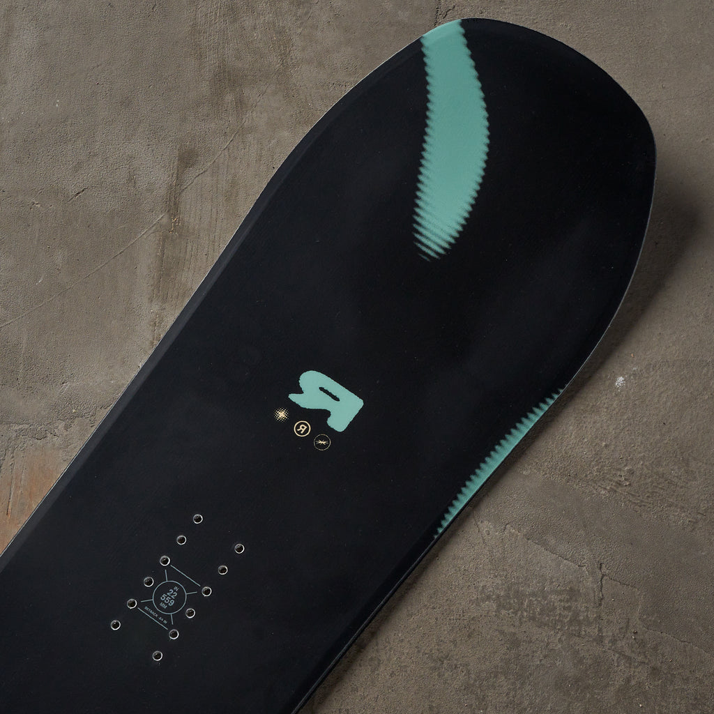 The Ride Berzerker comes from the mind of Jake Blauvelt, an ice coast legend and one of the smoothest riders alive. Jake needed a board that reflected his easygoing, fluid approach but also had the muscle to handle the rugged terrain and wild conditions he charges into. A stiff, camber profile gives the Berzerker the power, confidence, and responsiveness needed to charge hard wherever you take it. With rocker in the tip and just a touch of taper in the tail, the Berzerker flows quickly from edge to edge, delivering awesome hardpack performance and float in soft snow. The updated Tapered Quadratic Sidecut adds even more grip and confidence, while the board's core construction provides snappy energy from carbon paired with urethane. This deck is tailored to all-mountain riders who want serious performance. The Berzerker can glide across shallows, charge through deep drifts, and slice through frozen surface.Â