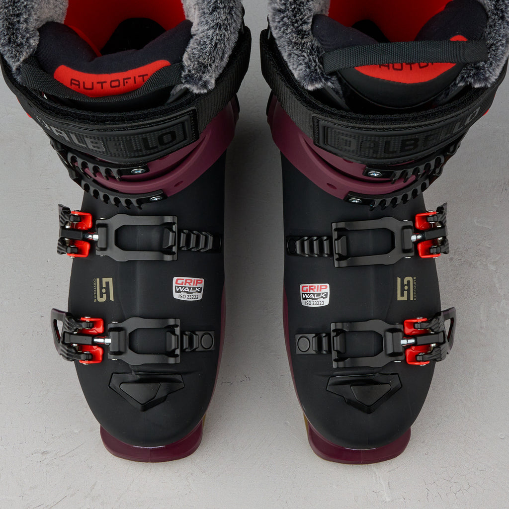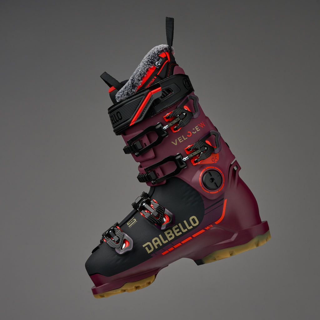 The Veloce 95 is a great boot for a beginner skier who wants a boot they can grow into or an intermediate skier who wants a comfortable boot that can still drive skis well. At a 95 flex, these boots have a smooth power transfer, and they're easy to put on. It offers a precise fit where it counts but is not suffocating, perfect for average to slightly wider feet. The liner is comfortable without sacrificing the locked-in feel, allowing for confidence on the slopes. This isn't the most powerful boot out there, but for skiers who like to just cruise around the resort, it's more than enough boot. Bonus points to Dalbello for a killer colorway this season.