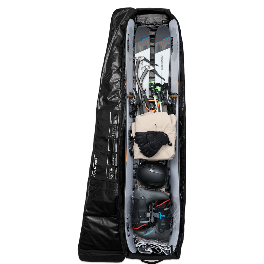 The Snow Roller Pro 127L is the very slightly updated name for the DB Snow Roller Pro. This is the double roller version of everyones favorite ski bag. DB is known for their adjustable, rib-protected, and fully compressible ski bags. This is a bag that you can adjust to the length of any ski up to 203cm. Roll the excess down and lock it in place for a custom fit every time. It easily fits two pairs of skis or snowboards. (bindings off) You also can load it up with accessories and clothes to keep your checked bags at a minimum. The capacity of this bag is a lot more than it looks. If you are apartment living, or do not have an entire room dedicated to gear storage, than you will love the fact that this bag rolls down to about the size of a small duffle bag and can be tucked inside a closet with ease. But our favorite thing about this bag, is the same thing we love about all DB bags - the Hook-Up System™️. Signature hook and loops on DB bags can be attached to each other so you only end up rolling one fluid set of luggage through the airport instead of using all of your limbs to transport multiple bags.