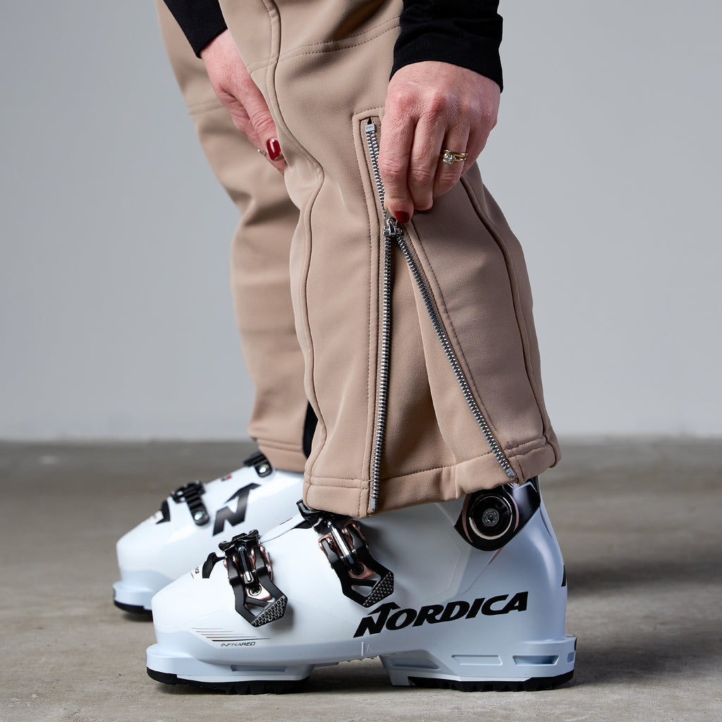 It doesn't get much better than a well-fitting pair of soft-shell ski pants, and the Jet pants are no exception. With a high-waisted fit and customized HEAD belt, you can bet that you will be looking fiiiiine. The Schoeller® softshell fabric keeps things tight while also allowing you to be smooth and dexterous on the mountain. Shiny silver zips at the bottom can create a bell-bottom silhouette or some extra room for your ski or snowboard boots.