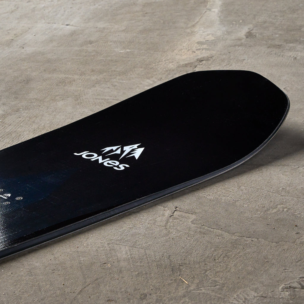 Strap into the Jones Frontier and the possibilities are endless. Built to be a daily driver for a wide range of riding styles, this board does it all. It’s a mid-flex, directional board with a floaty, freeride nose matched with a freestyle tail. It can rip groomers, holds up well in soft snow, and can do everything in between. The Frontier’s medium flex and camber shape allows enough stability to lay down some smooth carves on hardpack but isn’t so stiff that it feels overly demanding at lower speeds or in tighter terrain. Because it’s not the stiffest board, some more aggressive riders might find it lacks confidence at higher speeds, if you’re looking for something a little more powerful, check out the Jones Aviator or the Jones Flagship.