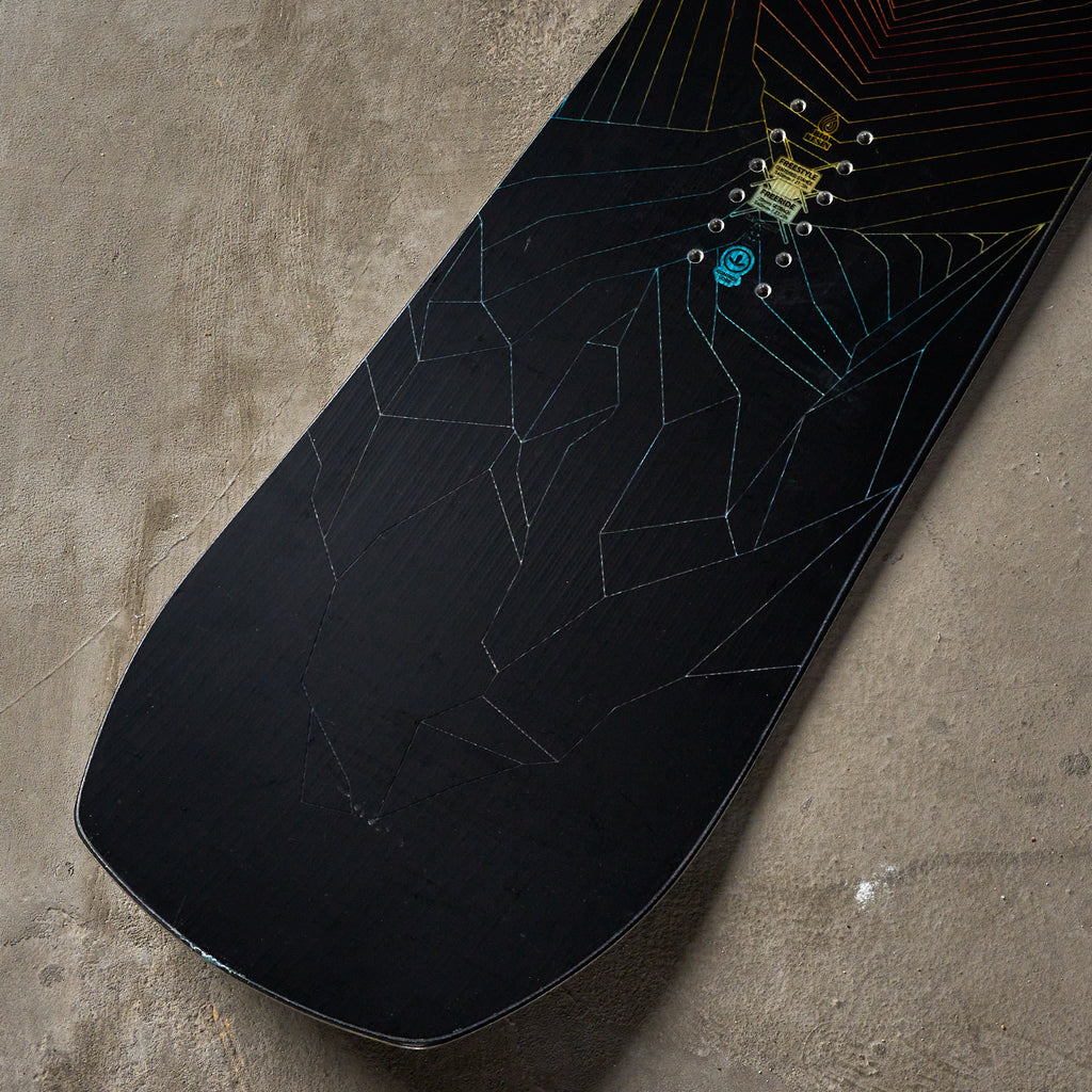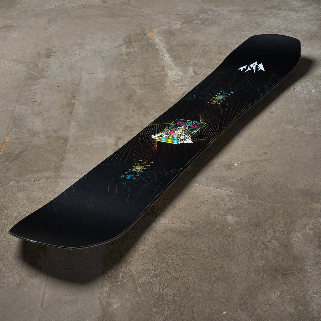 The Mountain Twin is a top-tested board every year because it really does do it all. The board brings a twin shape (hence the name) and a medium-stiff true camber profile. It has the shape of a park board but the burliness of an all-mountain charging board and is meant to bring riders the best of both worlds. It does all the things a park board can do; it's poppy, energetic, feels balanced, can be ridden switch, and loves park laps. It's not as playful as your average park board, but it's stiffer and more burly for when you want to take your adventure to other parts of the mountain. The Mountain Twin has become a favorite because while it has that freestyle shape and DNA, it maintains performance on hardpack groomers, stays confident through variable snowpack, and feels energetic and snappy in tighter terrain. A lot of freestyle boards can get nervous at high speeds and when the conditions are less than desirable, not the Mountain Twin.