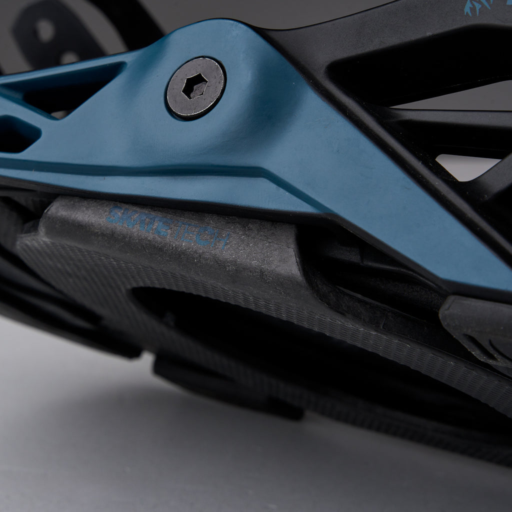 The Orion is a mid-flex binding that's gonna be a sick option for a variety of riding styles. A beginner rider whose just trying to figure it out will appreciate how forgiving and approachable it feels, intermediate riders who prioritize just having a good time over becoming the best snowboarder on the mountain will appreciate how undemanding it is, and riders with a more playful, freestyle approach will love its mellow flex pattern. The Orion, along with every Jones Binding, features a Skate-Tech chassis designed to enhance energy transmission between your binding and snowboard. Skate-Tech bindings incorporate a compact, circular base plate positioned horizontally between the binding's footbed and the board. This base plate will subtly pivot depending on the distribution of your weight. The outcome is a boost in energy transfer, creating smoother and easier turn initiation, while also reducing foot fatigue. On the Orion, that feels like increased predictability and makes maneuvering your board and initiating a turn even more effortless. The Orion is loaded with features that come together to make one of the most exciting packages in the mid-flex range. If you want something with a mellow flex pattern but don't want to compromise on quality, features, and comfort, the Orion should be on your list.
