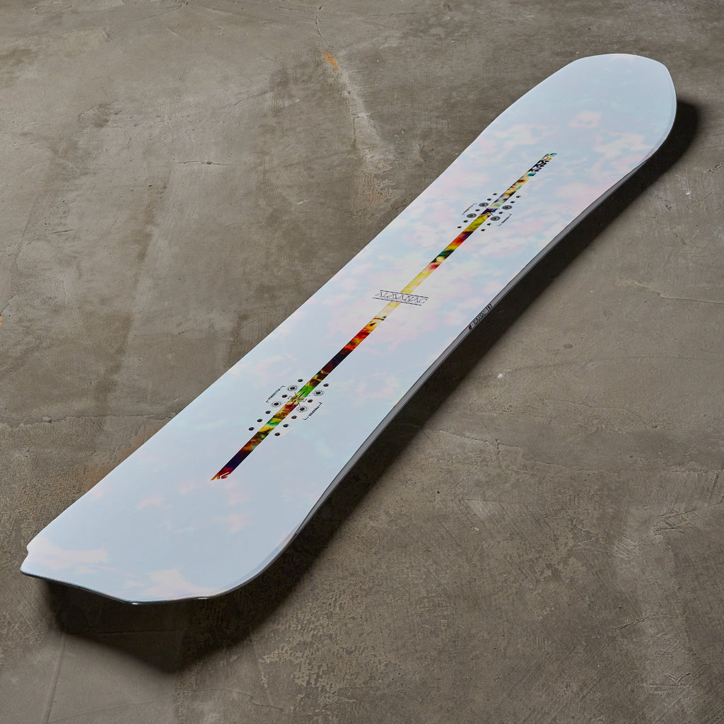 The Almanac is an all-mountain board built for those with a more creative approach to the mountain. Whether it's bulletproof groomers or knee-deep steeps, this playful board that takes on a shorter, wider, volume-shifted shape will get it done. A medium flex profile gives the board an energetic, effortless feel that loves weaving tight turns, slashing over knuckles, and popping off whatever natural features the mountain has to offer. Riders with a freestyle background will love the feel, it's a lot like a park board with an all-mountain shape. The wider shape and rocker profile in the nose makes it a top choice where the snow is deep and the refills keep coming. There are few boards I'd rather be blasting through the trees and getting face shots on. A lot of the most popular boards in this category tend to be stiff and aggressive, the Almanac's forgiving feel will make it feel quicker, poppier, and less demanding than those. It also makes it a more approachable option, so if you're not the strongest snowboarder, don't be afraid of this one. The Almanac is one of the most fun playful boards that will work everywhere on the mountain, so if you prioritize getting creative over hard-charging, this may be the board for you.