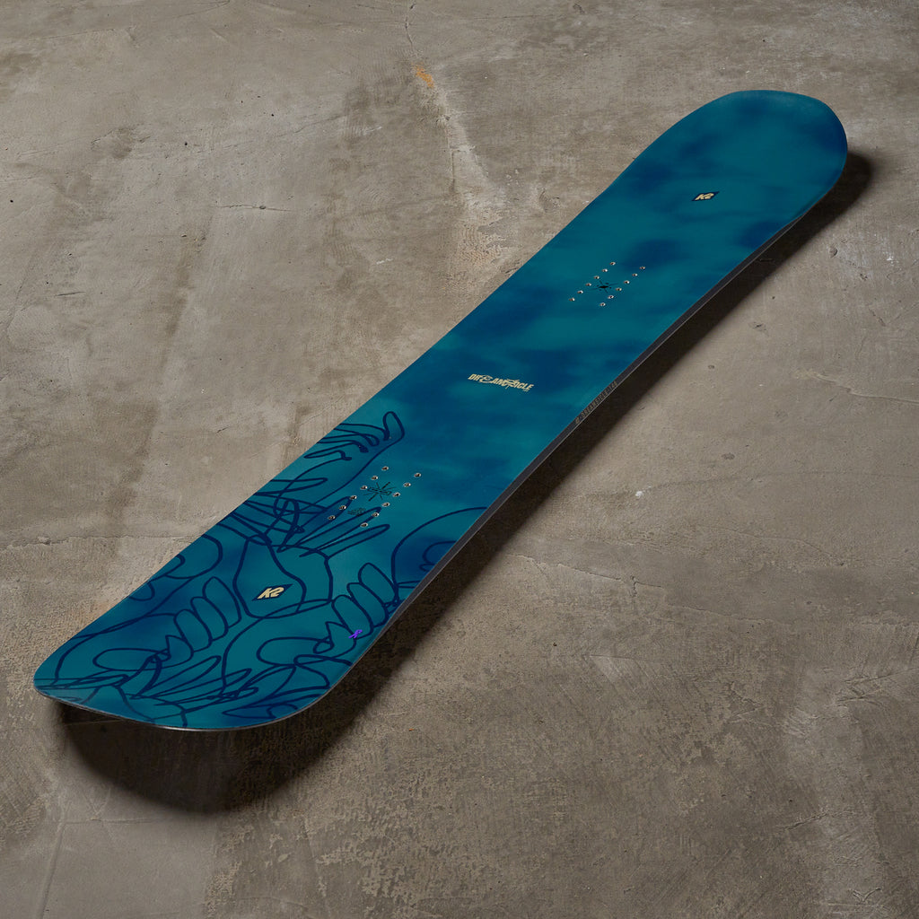 Looking to get better at snowboarding? Keep reading. The K2 Dreamsicle is friendly, it's approachable and it's just the tool most ladies need to take their shredding to the next level. The Dreamsicle is built with progression in mind. From beginners transitioning from rentals to progressing intermediates just looking to replace an old board, it won't take long to feel yourself improving and taking that next step. The board's softer flex pattern, slightly directional shape, and camber profile come together to make for smooth and easy turn initiation while giving you a nice stable platform. It's lightweight and not very stiff, so it feels really quick in and out of a turn and pivots easily. That maneuverability will also be key if you're on more technical, tricky terrain. A slight taper in the nose keeps the board a little wider in the nose so it can float through powder better. This and a slightly setback stance allow the board to perform pretty well in soft snow. Overall the Dreamsicle is an awesome board for anyone looking for a well-rounded option that can handle the whole mountain.