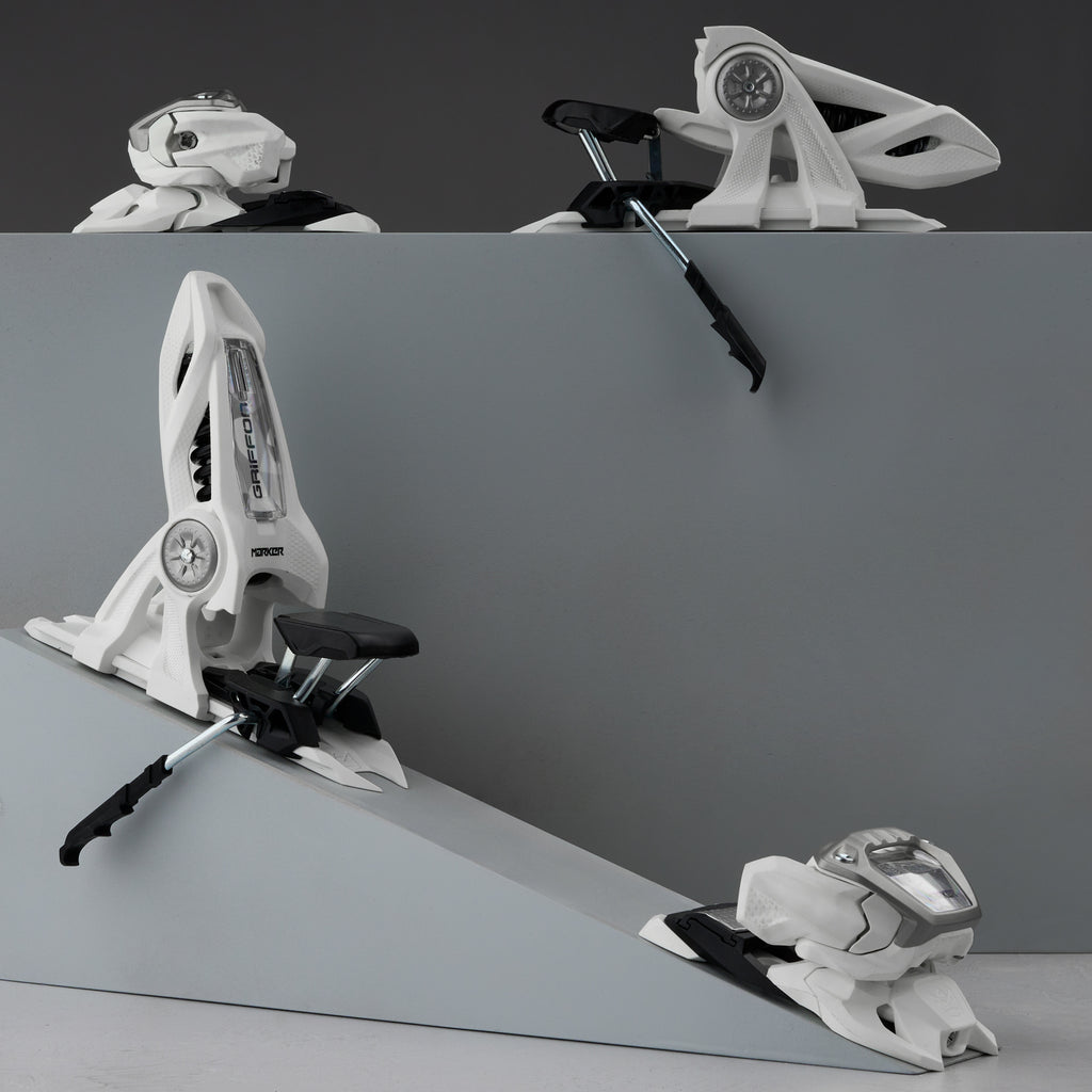 The Marker Griffon ID is the most popular set of bindings mounted to a pair of skis today. The Griffon ID's wide platform makes wider skis (skis over 76mm underfoot) more responsive edge to edge while still providing a precise feeling for the skier. The Griffon's compact design doesn't hinder the flex of the skis as much as many other bindings out there, so you are able to get maximum flex out of your skis. The Marker Griffon is a great option for a variety of ski applications; All-Mountain, Freeride and Freestyle. The Griffon ID looks a little different performs the same, except it is just able to accept any Ski Boot. The awesome inner workings have made the Griffon the choice binding for many skiers.