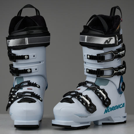 The Nordica ProMachine 105 is a true low-volume boot that drives skis efficiently and offers a performance-oriented fit. These boots are great for more experienced skiers with a foot that skews more narrow or prefer an extra tight fit. The 105 fex pattern is strong but not overbearing. It's a great middle-ground for skiers who want something that can drive any ski but isn't the most stiff, aggressive option. The boot is responsive enough to provide small inputs from your legs right to the ski quickly and predictably. This boot provides a balanced performance that works for a ton of skiers. From progressing skiers who want to take it to the next level, to more experienced skiers who don't need to the highest-performing option. If you're looking for more power check out the ProMachine 115w.