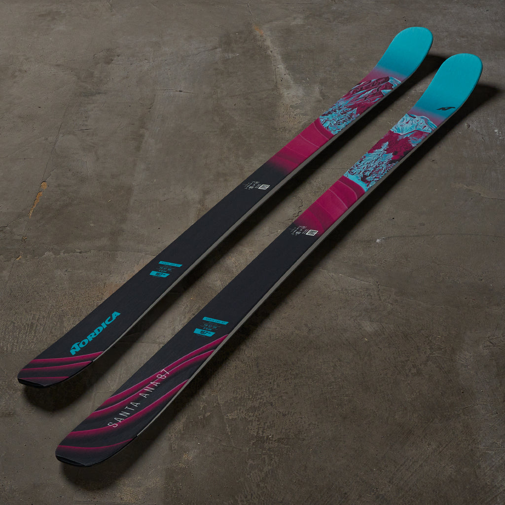 The Nordica Santa Ana 87 is one of the most impressive skis in the category and is sure to give the wildly popular Blizzard Black Pearl 88 a run for its money. The Santa Ana series has been around for quite some time now and has become one of the more popular women's specific skis on the market. The Santa Ana 87 is a brand new ski for this season and we can say, with certainty, that she's the best version of herself. At 87mm underfoot the Santa Ana 87 is quick edge to edge and provides solid grip even on icier ski days. For a ski that is geared towards cruising or crushing groomers the Santa Ana has a bit more rocker in the tip and tail than most of the comparable skis in the category -- making it a more well-rounded option and more capable off-trail. The Santa Ana 87 is built for skiing smooth groomers and carving nice turns but it won't feel out of place if you decide to get adventurous every now and then. Compared to previous versions of the Santa Ana, the new 87 is more forgiving and easier to balance on while also feeling a touch more powerful and energetic. Having skied these next to the previous versions, it's easy to see that Nordica has done an awesome job improving performance and widening the range of skiers the Santa Ana works for.