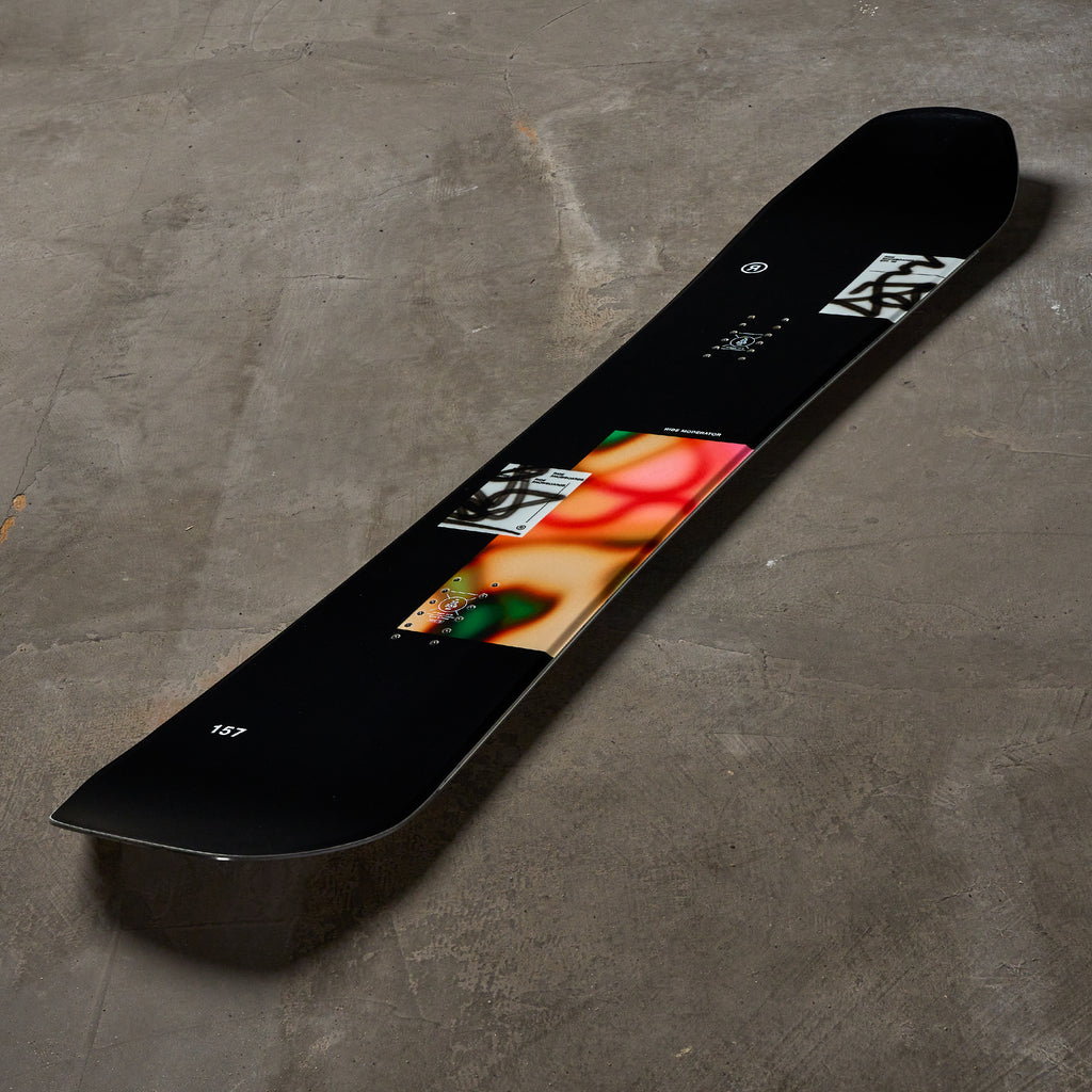 The all-new Ride Moderator is a more playful version of the Ride Deep Fake. Ride took the shape and profile of one of their hottest new boards and gave it a softer, lighter core for riders who prefer a more forgiving ride. Like the Deep Fake, the Moderator is built for all-mountain riders who want their board to perform no matter where they take it, it's just more geared toward those who prioritize maneuverability and pop over stability. A camber profile combined with a slightly directional shape that tapers out at the nose allows the board to perform regardless of conditions. The wider and more rockered nose will allow the board to crush on those days when there's some soft snow, while the camber will provide grip on those groomer days when the conditions are not ideal. While the Moderator is not as stiff as its counterpart the Deep Fake, it maintains a medium flex that can still hang in more aggressive riding scenarios. It's just slightly easier to bend, so turning is quicker and the board feels more lively. This is awesome for riders who spend less time bombing trails, and more time in the trees, in the park, or playing around on sidehits and knuckles.