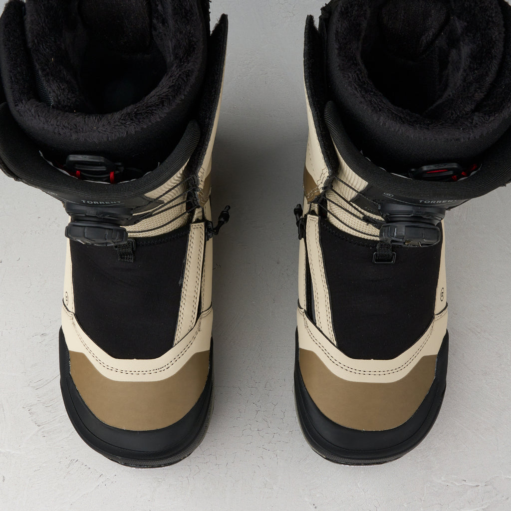 There's no denying the Ride Torrent is a top dog. This is the boot of choice for multiple testers here at The Ski Monster, including Neil who's in charge of buying our snowboard inventory (the guy knows a thing or two). This is a mid-stiff binding that toes the line of aggressive but not limiting perfectly. It's got enough power to drive the board down harder charging runs confidently and efficiently, but isn't so rigid that it's too demanding at lower speeds. Performance-wise, it works for all types of riding styles. It's comfortable with aggressive riding or mellow riding, so it's not going to feel unnatural for many snowboarders. Newer riders might be better off in something a little softer. If you're a beginner and you're drawn to the high-quality of the Torrent, check out The 92 from Ride. It's a similar boot with a more approachable feel. That's not to say the Torrent isn't approachable, it's just stiffer so it's more comfortable with an experienced rider. The Torrent's top-end performance is higher because of the extra stiffness. It's going to provide more response at higher speeds. It's not the stiffest boot out there, but it can handle all speeds. The torrent fits great out of the box, is loaded with tech, and is ready to charge all over the mountain. Win win win.