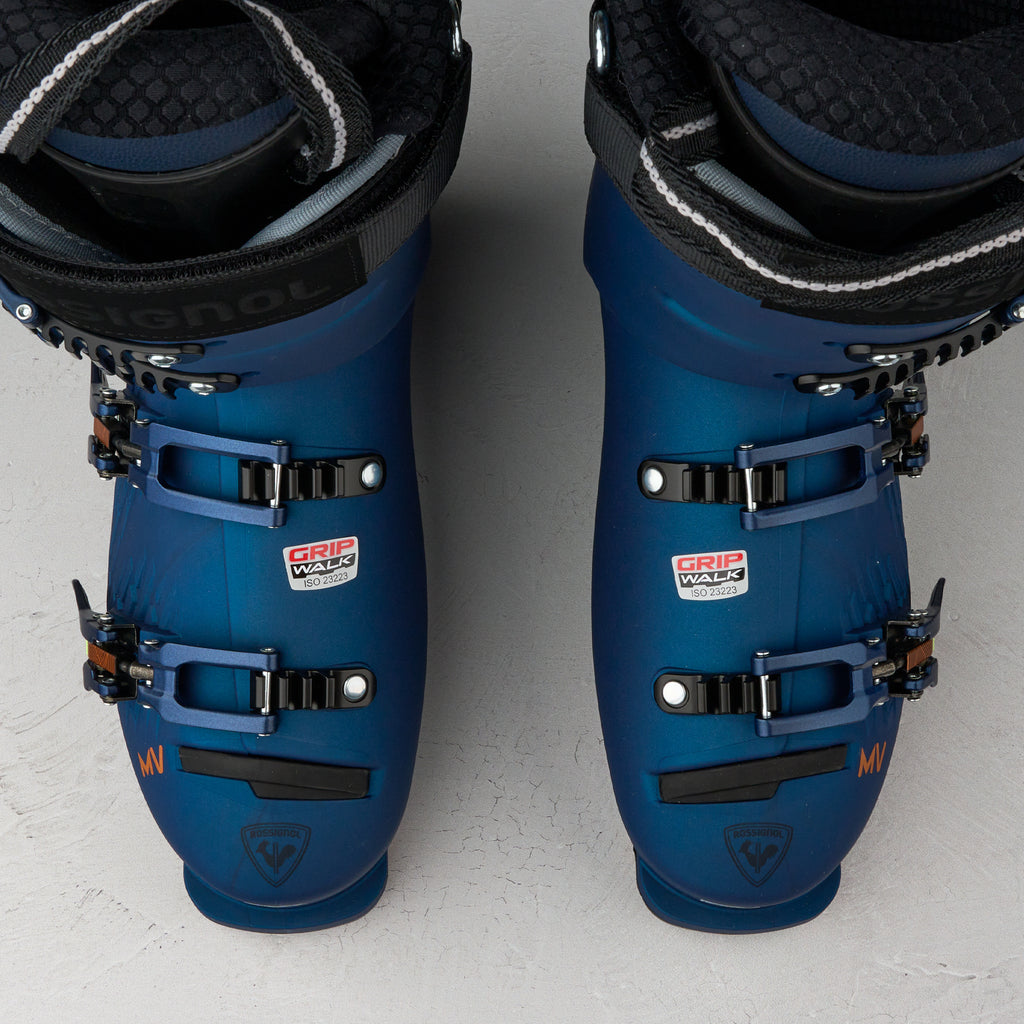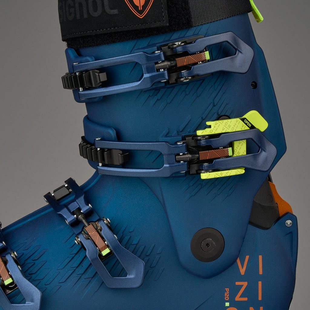 The Rossignol Vizion Pro 120 is a mid-volume fitting ski boot that provides solid performance, and it is insanely easy to put on and take off. Rossignol has built a ski boot with all of the performance characteristics you'd expect from a 120 flex ski boot while also having a ton of creature comforts to keep skiers happy all day on the hill. The buckle on the cuff, when flipped all the way forward, allows the cuff of the ski boot to open and articulate backward, making the step-in process a breeze -- no hands needed. This isn't a "rear entry" boot; it's a normal two-piece overlap design with a cuff that opens dramatically to allow for easy step-in. During the development of this boot, Rossignol's main focus was fit and performance -- they crushed that aspect. It's a generous-fitting mid-volume boot that has a surprising amount of power and stability considering how comfortable the boot is.