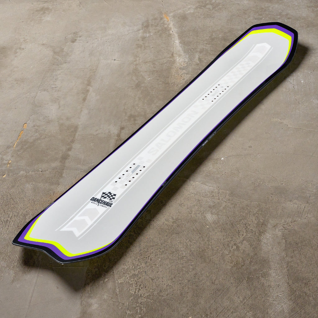 The shorter, wider shape is really fun for making tighter radius turns and slashes and is perfect for popping off of bumps and side hits. The board is very snappy and provides a ton of feedback through a turn, not in a chattery way, just a playful way. Because the board is more playful it's not the most powerful board ever. If you're into the shape but like a stiff board, check out the aforementioned Peace Seeker or Excavator. The directional shape allows for awesome control in trees and makes soft snow days even better. Camber underfoot with some additional strength from basalt stringers adds lots of pop. Great edge hold when carving, slightly looser when finishing a turn, but won't wash out unless you're trying to slash it. Not super demanding either, this mid-flex design makes the board great for growing riders who like to play all over the mountain. Honestly, if you're not planning on riding Switch a lot of directional boards are way more fun. Lively, energetic, and overall a good time makes the Salomon Dancehaul a winner for riders who like it all.