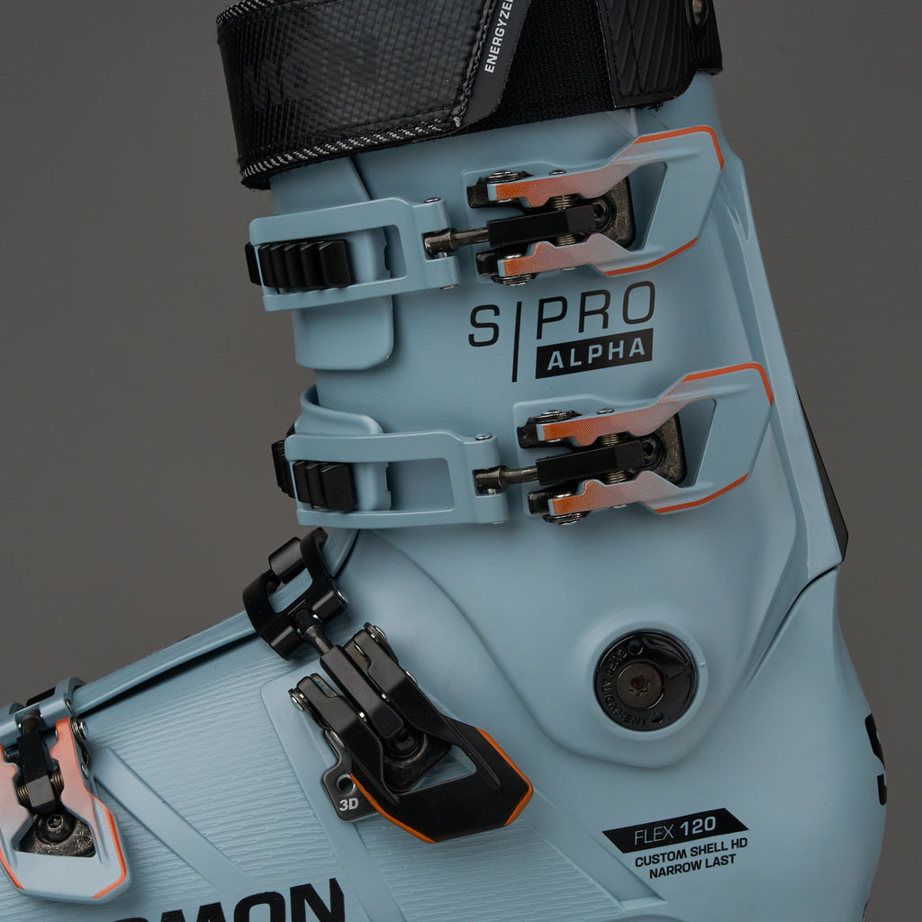 The Salomon S/Pro Alpha 120 is a low-volume boot with a high-performance threshold. The Alpha 120 fits really well, has an easy-to-access power band, and it works for a huge range of skier types. The 120 flex offers great power and responsiveness, but compared to the stiffer S/Pro Alpha 130 it's more forgiving, meaning it works better for less experienced skiers or lighter-weight experts who don't need the stiffest boot out there. For a low-volume boot, the Alpha 120 is an easy boot to put on and take off. The Alpha 120 also has a heat-moldable shell, heat-moldable liner, and a removable tongue; making it one of the easiest boots to modify for fit adjustments. If you're an intermediate to advanced skier with narrow feet looking for a responsive boot that can hold your feet in well and make your ski day more enjoyable, this is for you. Salomon builds some of the best boots on the market --this is definitely no slouch, and it works for less experienced skiers.