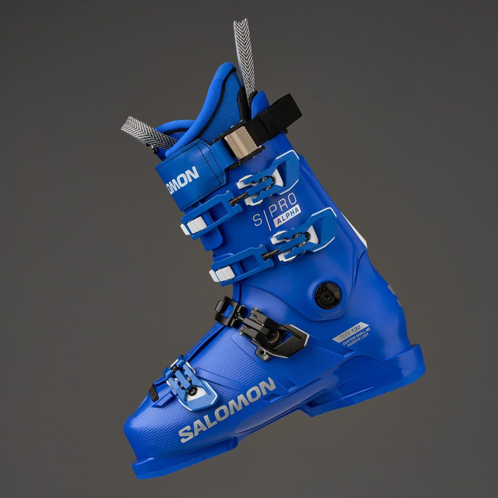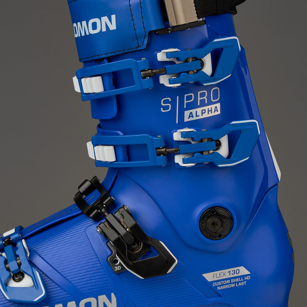 The Salomon S/Pro Alpha 130 is a high-performance boot that offers a low-volume fit. You need a great boot if you're a ripping skier and want to get the most performance out of your skis. When we tested the Alphas last, we threw them on brand new at Alta -- right out of the box. The out-of-the-box fit was great, and we had no problem skiing in them all day, considering they weren't broken in or molded. Aside from that, the performance was incredible and a major upgrade over the Salomon S/Max. This is a low-volume fitting boot for skiers with more narrow feet or those who want a performance-oriented fit. The 130 flex offers ultimate power, responsiveness, rebound, and snow feel. The lateral stiffness of this boot is great, allowing you to get those skis tipped over quickly and confidently. Even though this is a more performance-oriented boot, it isn't the most uncomfortable thing out there, and it's not difficult to get in and out of.