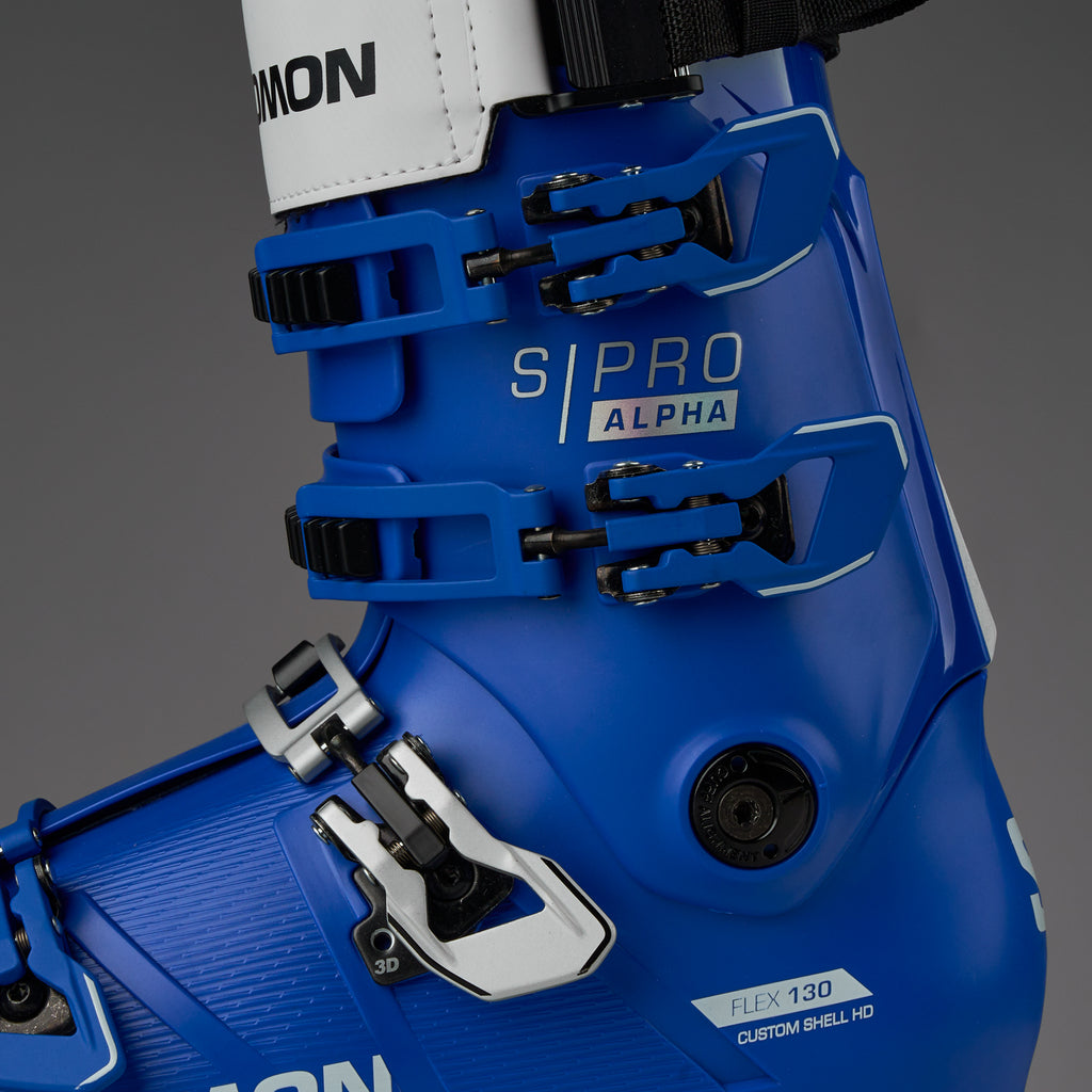 If you're a ripping skier and you want to be able to get the most performance out of your skis, you need a great boot. This is a great boot. The all new S/Pro Alpha line replaces the Salomon S/Max line. When we tested the Alphas last season, at Alta, we threw them on brand new, right out of the box. The out of the box fit was great and we had no problem skiing in them all day considering they weren't broken in or molded. Aside from the that the performance was incredible and a major upgrade over the Salomon S/Max. This is a low volume fitting boot for skiers with more narrow feet or those that want a performance oriented fit. The 130 flex offers ultimate power, responsiveness, rebound and snow feel. The lateral stiffness of this boot is great too allowing you to get those skis tipped over quickly and confidently. Even though this is a more performance oriented boot, it really isn't the most uncomfortable thing out there and it's not difficult to get in and out of.