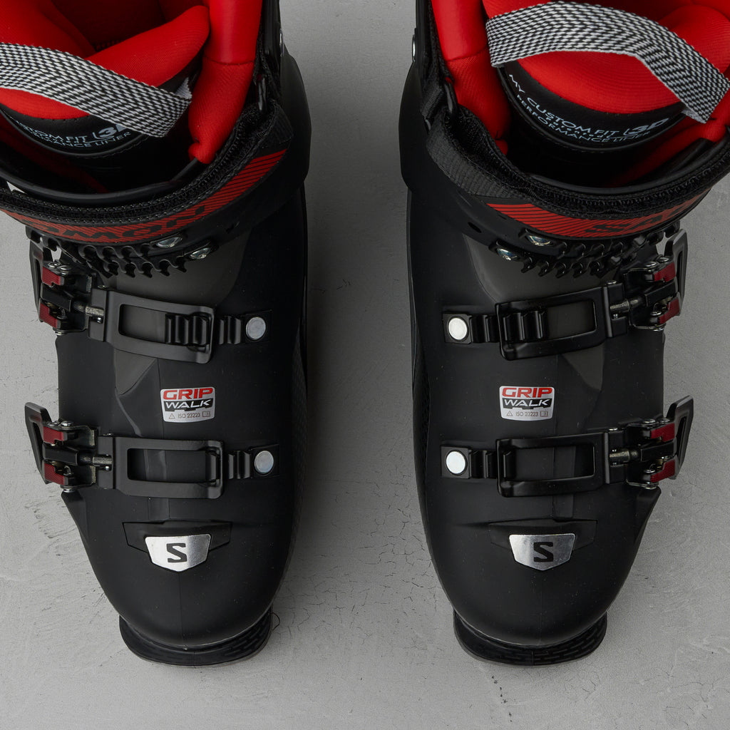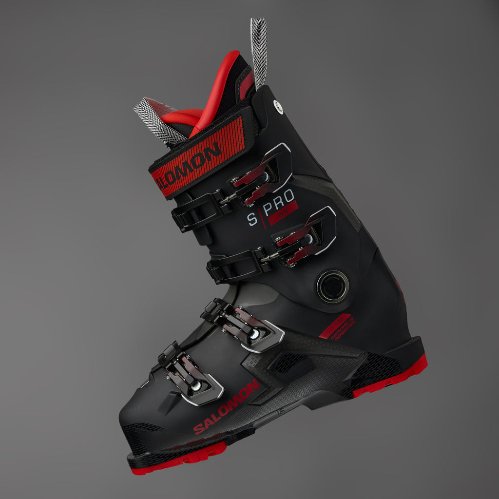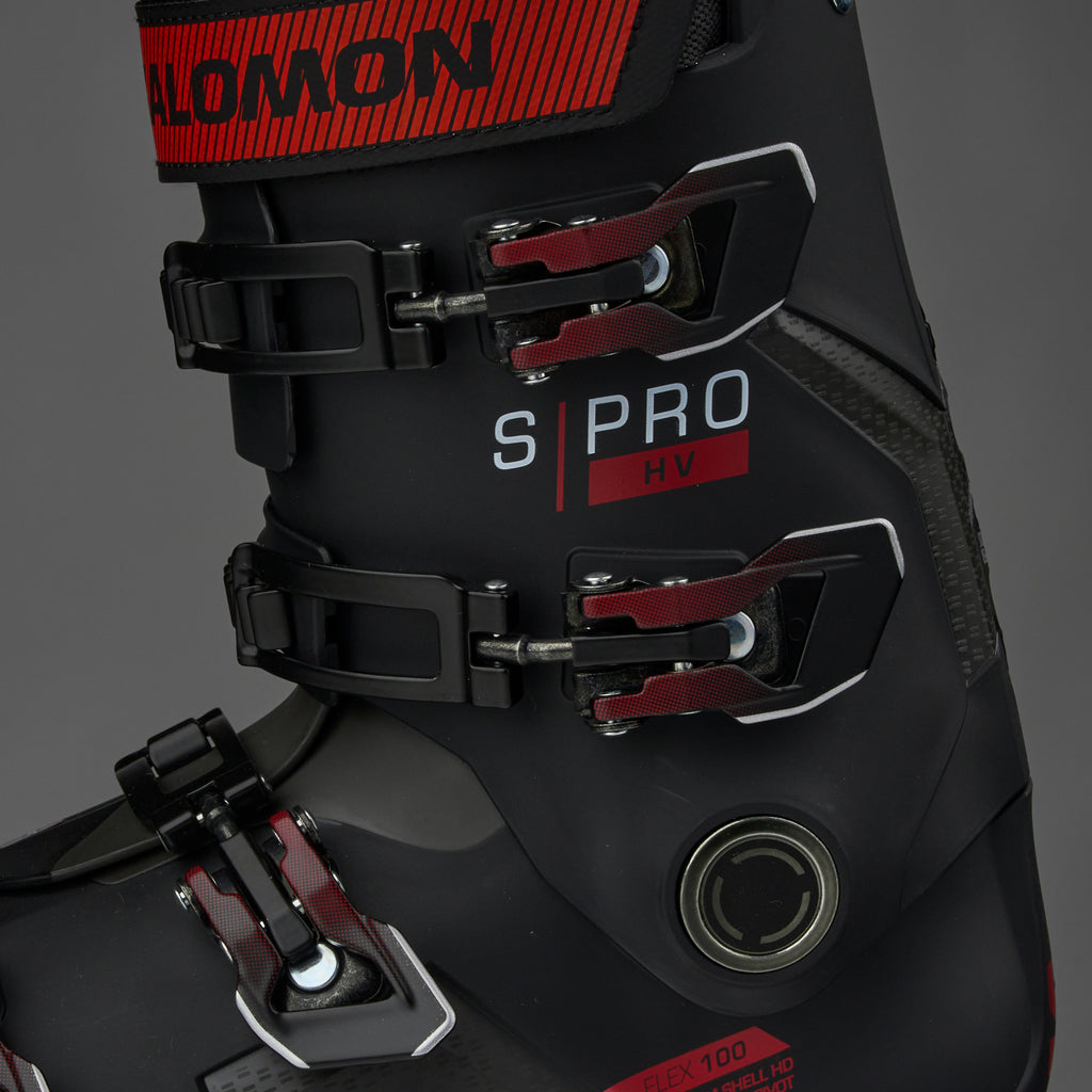 The Salomon S/Pro HV 100 is a very popular high-volume boot, it shares some of the fit characteristics of Salomon's regualr S/Pro boots it's just more friendly for skiers with wider feet and thicker ankles. For a 100 flex boot, it skis really well and can power more skis than other boots at the same flex rating. It just transmits energy really well. By doing so, you'll be more efficient a.k.a you don't have to work as hard -- not bad right? The 100 flex makes sense for progressing skiers making the jump from rentals or intermediate skiers who want or need a more forgiving flex ski boot. If you're looking for a more powerful boot go for the S/Pro HV 120.