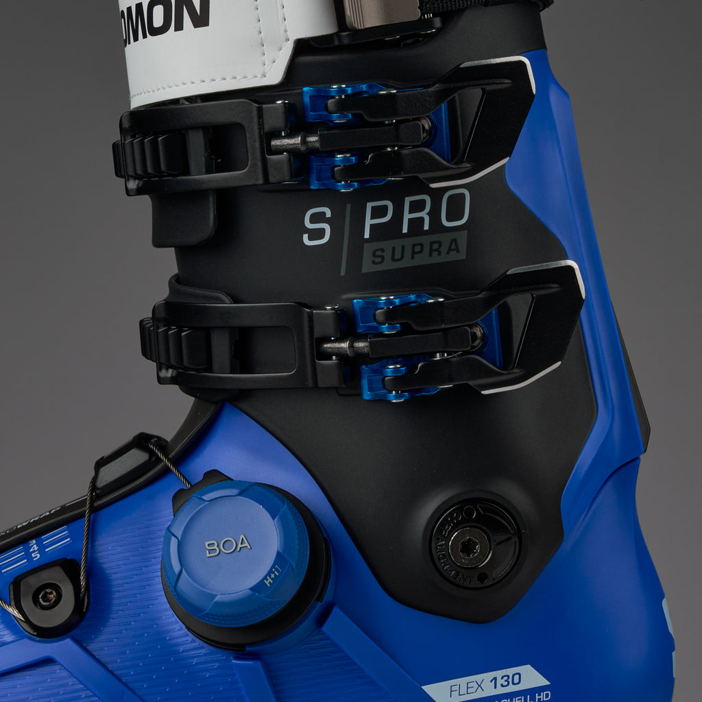 The new Supra boots, from Salomon, offer a great fit for average feet and skiers that want to maintain a good level of comfort without giving up performance. The 130 flex on this boot is more than enough to drive all recreational skis efficiently and easily. Expert skiers who don't want to be in overly aggressive boots will still be more than thrilled with the amount of performance the Supra 130 has to offer. The boot is responsive and stiff enough to bend skis and turn them with ease. The BOA system on the Supra makes for even wrapping of the foot and allows for more generosity on top of the foot than some buckle boots. The Supra BOA is also a really easy boot to modify. The liner and shell are both heat moldable which will help to remove any small pressure points that you might feel in the boot. If you're a good or great skier looking for a boot that is going to be able to allow you to ski as hard as you want but still care about comfort, the S/Pro Supra BOA is an awesome option.